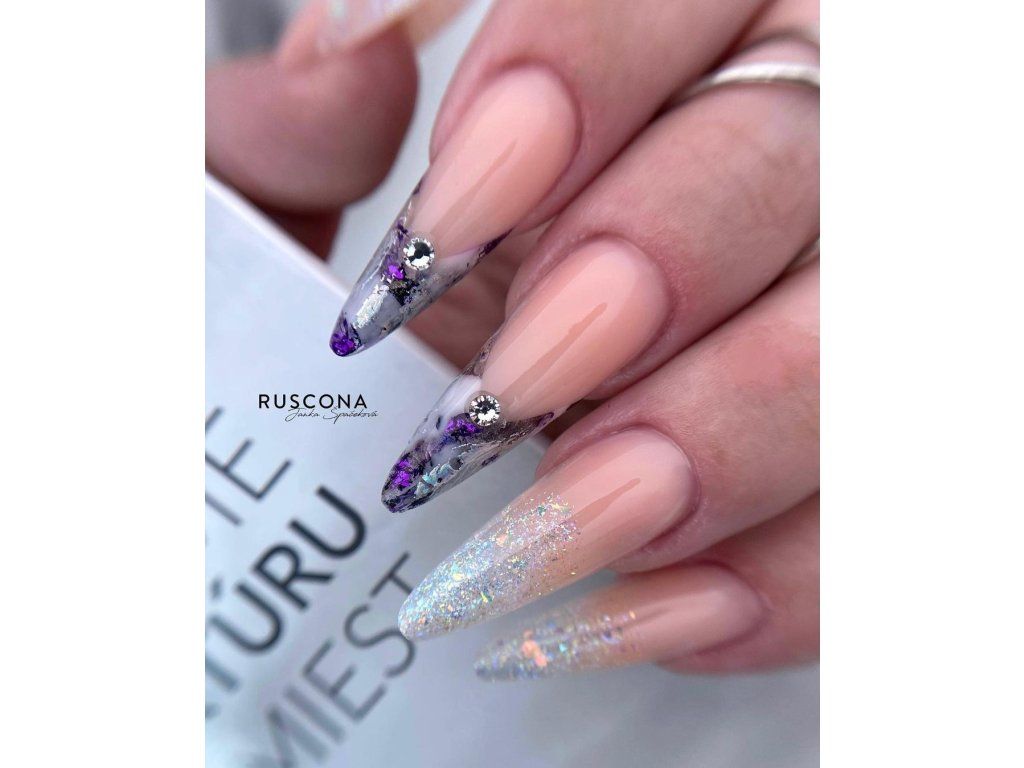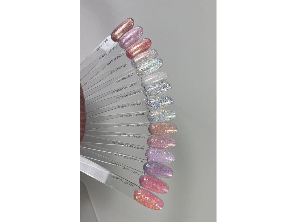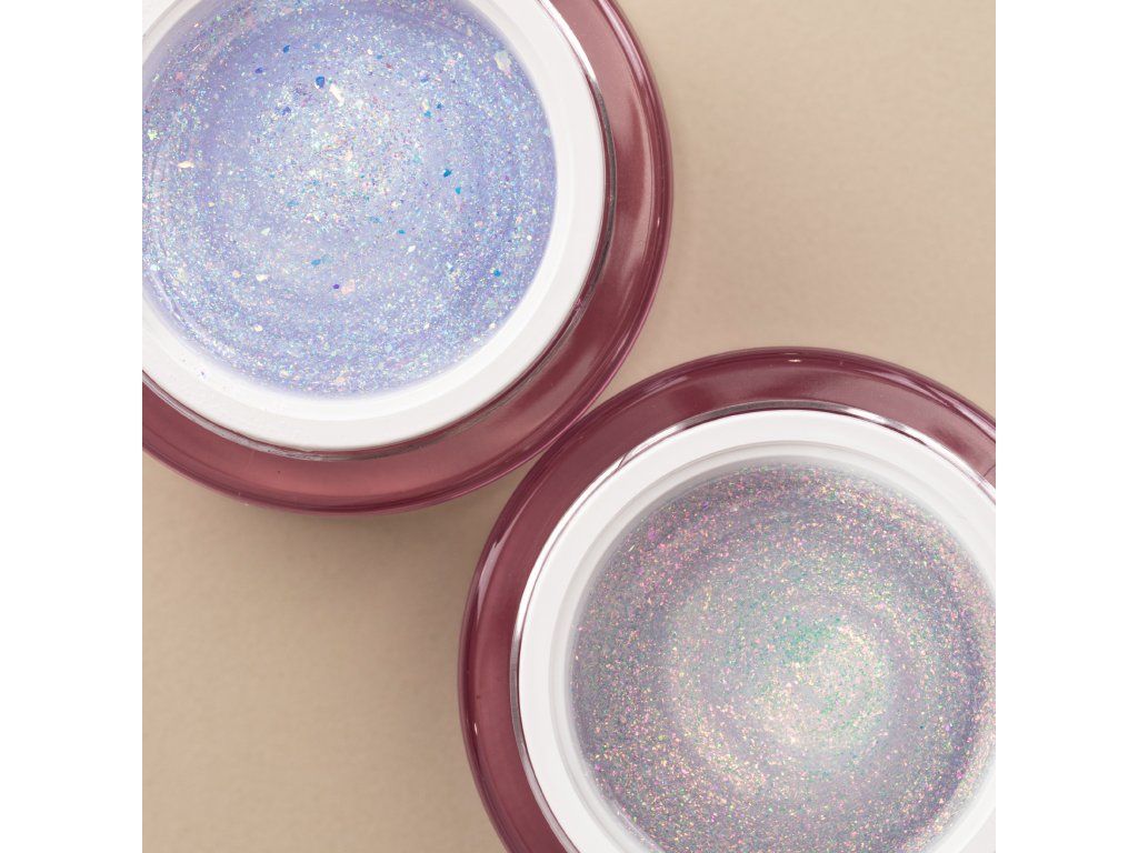 - samovyrovnávací stavební gel s měnícími třpytivými částicemi