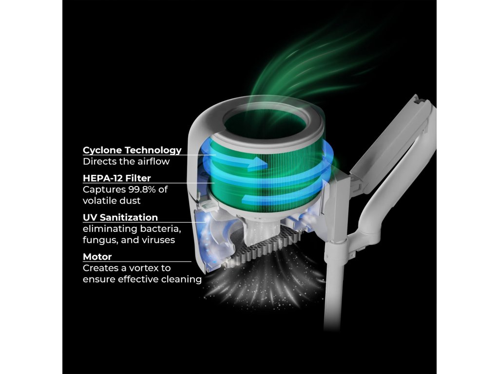 - HEPA-12 filtr medicínské kvality pro maximální ochranu dýchacích cest